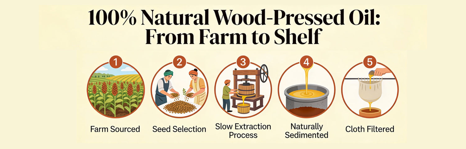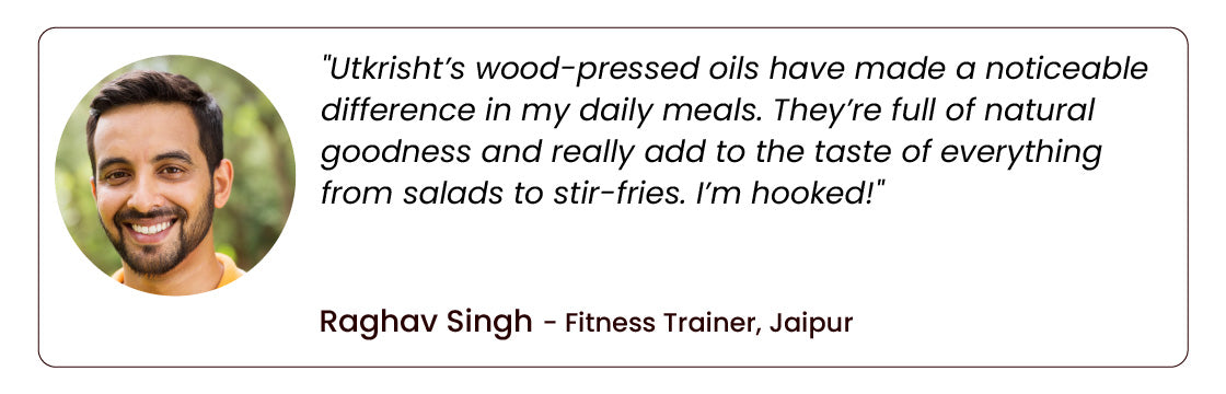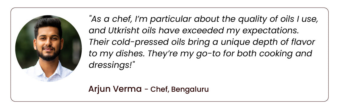 Utkrisht oils are made using a traditional wood-pressing method that preserves their natural nutrients and flavor, unlike refined oils that lose quality through heat processing.